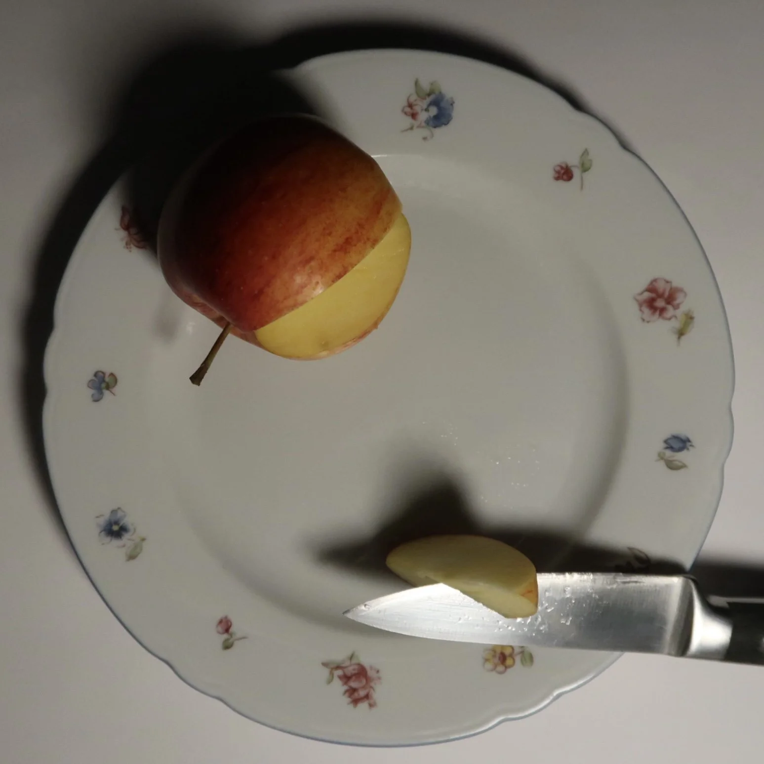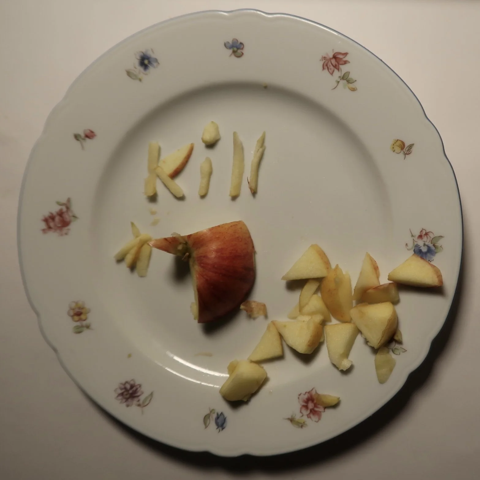 In Kill *pple wird der Apfel, ein alltägliches Symbol für Leben, Wissen und Verführung, schrittweise zerkleinert. Die Arbeit erinnert an eine stille Folterung, bei der das Zerstören zugleich Beobachtung und Ritual wird. Das Künstlerbuch zeigt, wie ein vertrauter Gegenstand seine Unschuld verliert und zur Projektionsfläche innerer Zustände wird.